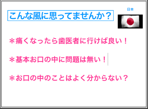 戦後長らく、「痛くなったら歯医者に行く」が基本的な日本国民の考え方でした。