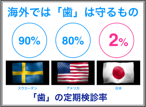 実は日本人の体の健康診断の受診率は82%、なのに口の中の健康診断受診率だけ2%、、、